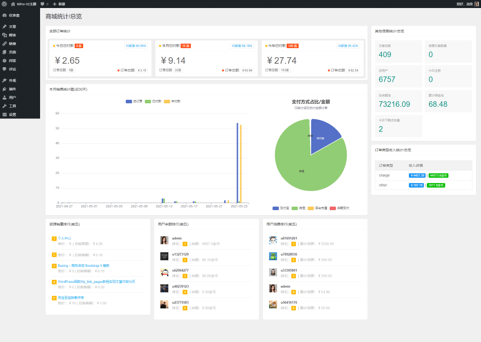 RiPro-V2是一個RiPro主題的全新升級重構,首頁拖拽布局,高級篩選,自帶會員生態(tài)系統(tǒng),超全支付接口,你喜歡的樣子我都有!RiPro主題,更強大的全資源/素材類主題,無需插件,集成強大的支付,后臺管理,用戶體驗舒服。支持卡密,充值,積分,會員,高級篩選,推廣傭金,作者傭金,前臺創(chuàng)建文章,統(tǒng)計,自定義幣種,自定義會員標識,全站功能實現(xiàn)AJAX,圖片全站真正懶加載,支持SEO,注冊郵件驗證碼,等等等等!最新支付接口已集成支持:微信支付寶官方,訊虎支付,虎皮椒,Payjs,Paypal,易支付,站內余額,卡密支付。