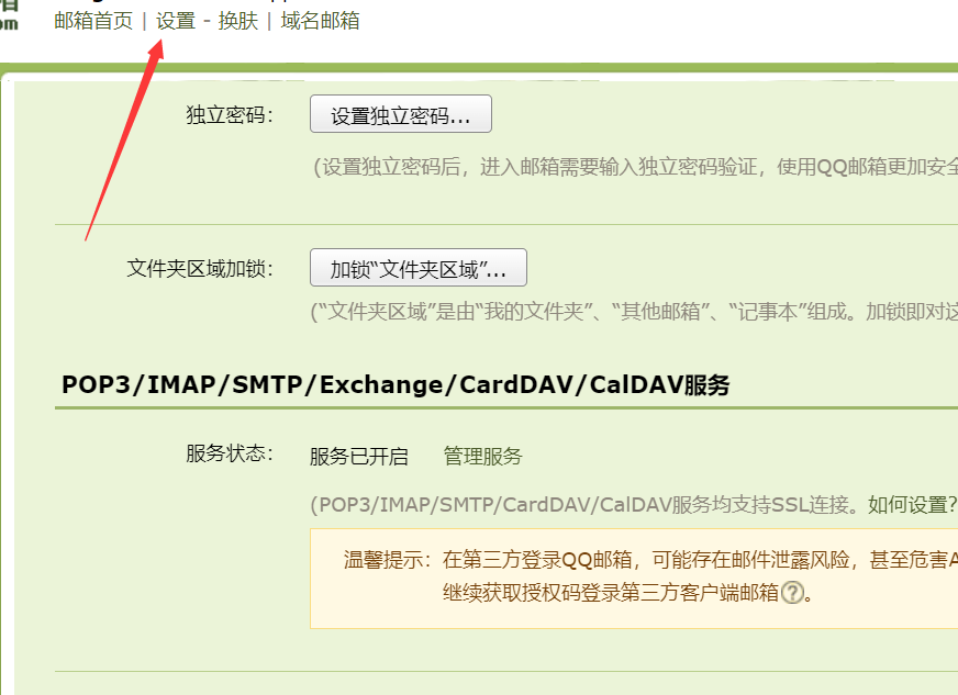 安裝完成后,我們在菜單中點擊 “WP SMTP”,設(shè)置對應(yīng)的參數(shù),我們以QQ郵箱為例,進(jìn)入郵箱點擊設(shè)置,再切換到賬戶頁面,找到下面的 POP3/IMAP/SMTP/Exchange/CardDAV/CalDAV服務(wù),開啟這個服務(wù),按提示生成一個授權(quán)碼。復(fù)制授權(quán)碼。