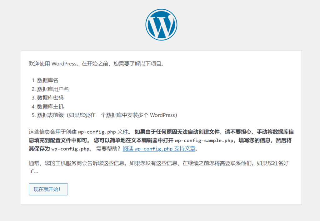 3、訪問網站,出現下面的頁面說明代碼部署正確,可進行安裝,點擊“現在就開始!”