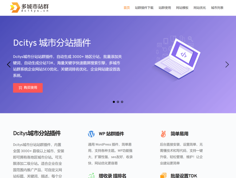 Dcitys城市分站插件,支持后臺(tái)直接升級(jí),當(dāng)有新版本發(fā)布的時(shí)候,在插件中會(huì)有新…
