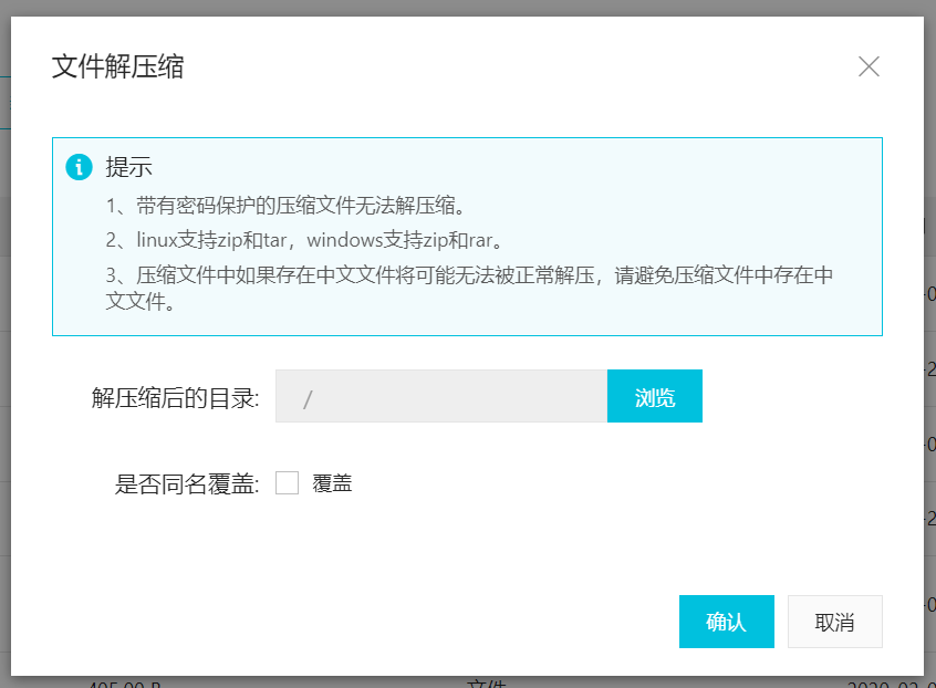5、通過文件管理器上傳WordPress壓縮包并進(jìn)行解壓,注意設(shè)置解壓后的目錄(要設(shè)置為 /),下載WordPress