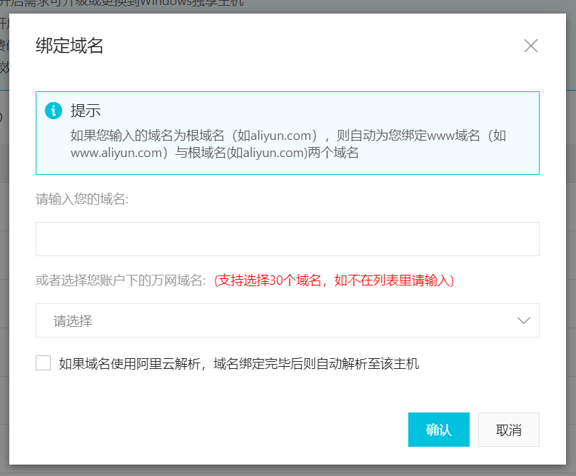 5、綁定域名、并將域名解析到虛擬機(jī),如果是阿里云的域名可以直接選擇進(jìn)行綁定。