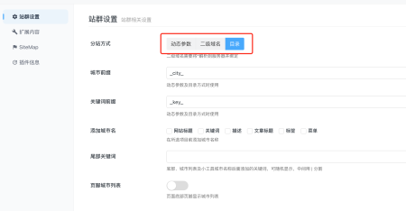 Dcitys城市分站支持動(dòng)態(tài)參數(shù)、二級(jí)域名、目錄形式。 1、動(dòng)態(tài)參數(shù)形式,生成的連接形式如:…